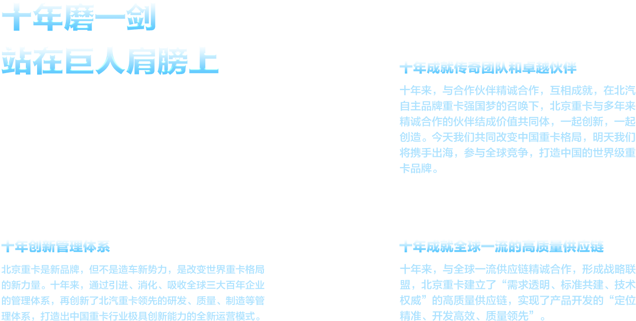 北京重卡全力打造重卡行業(yè)的“復(fù)興號”,帶領(lǐng)中國自主品牌重卡參與全球競爭,驅(qū)動中國重卡產(chǎn)業(yè)高質(zhì)量發(fā)展,成為世界重卡行業(yè)的“中國智造新名片”,實現(xiàn)產(chǎn)業(yè)強(qiáng)國夢,向世界發(fā)出“崛起中國力量”的最強(qiáng)音。