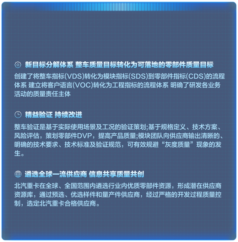 中國汽車產(chǎn)業(yè)百年大變局的重要時刻,受中國夢感召,北京重卡以敢于有夢的責(zé)任和擔(dān)當(dāng),構(gòu)筑自主品牌核心競爭力,打造一款能和歐美重卡媲美的世界級重卡。