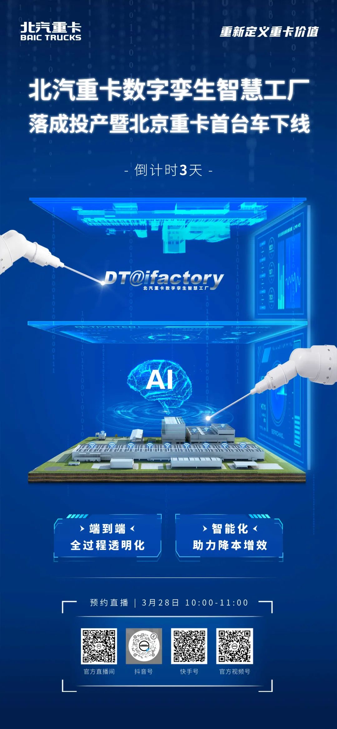 倒計(jì)時(shí)3天 | 北汽重卡數(shù)字孿生智慧工廠落成投產(chǎn)暨北京重卡首臺(tái)車下線